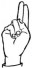 На ћирилици написано БУДИМИР ВЕСКОВИЋ састоји се из 15 слова [?]. Исписано ћириличном једноручном азбуком за глувонеме: